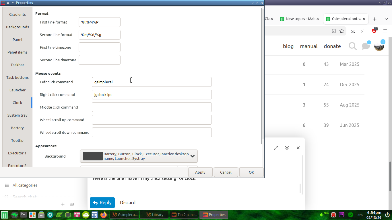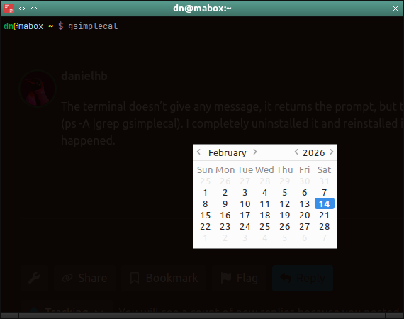The terminal doesn’t give any message, it returns the prompt, but the process remains active. (ps -A |grep gsimplecal). I completely uninstalled it and reinstalled it… the same thing happened.