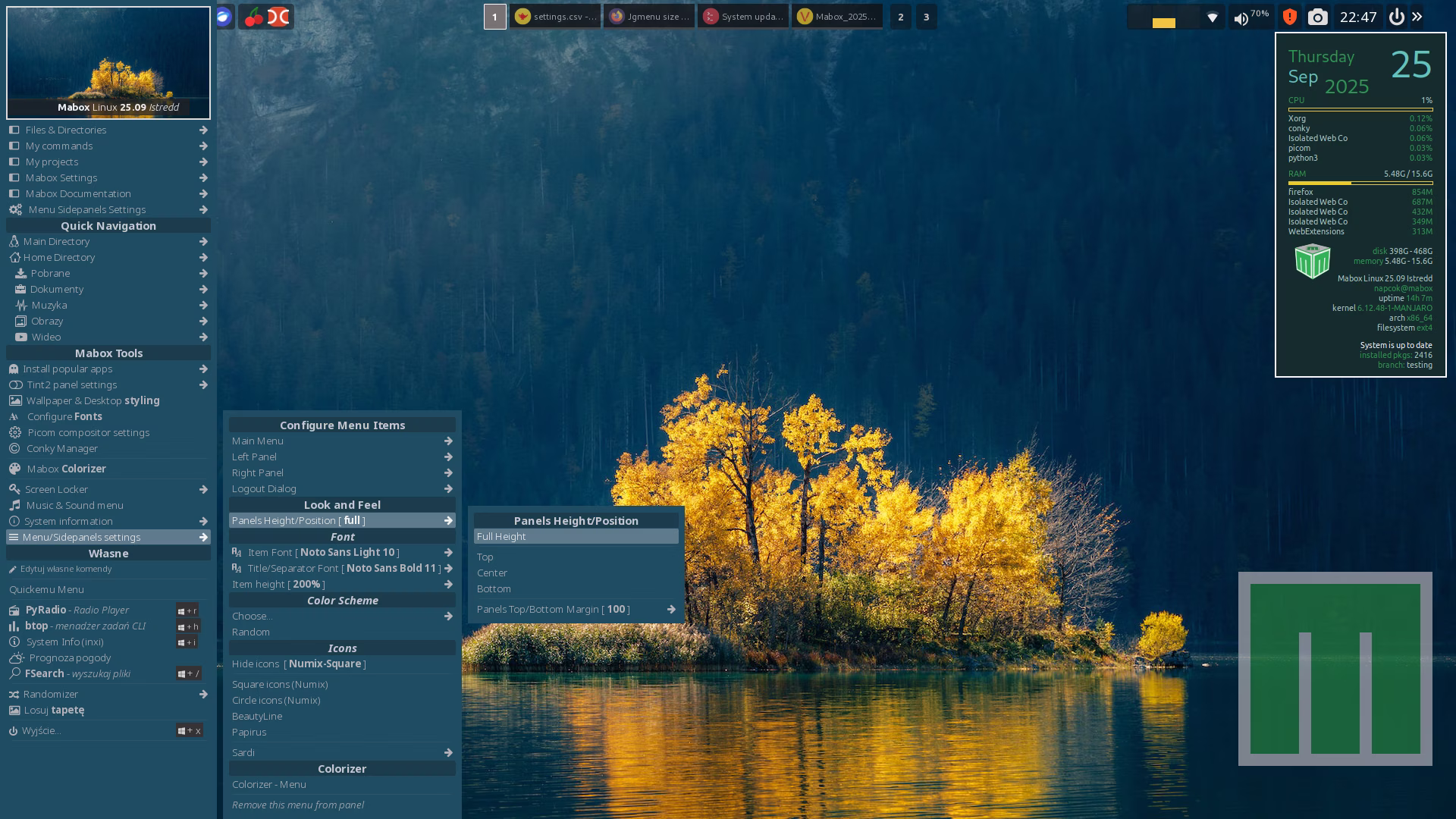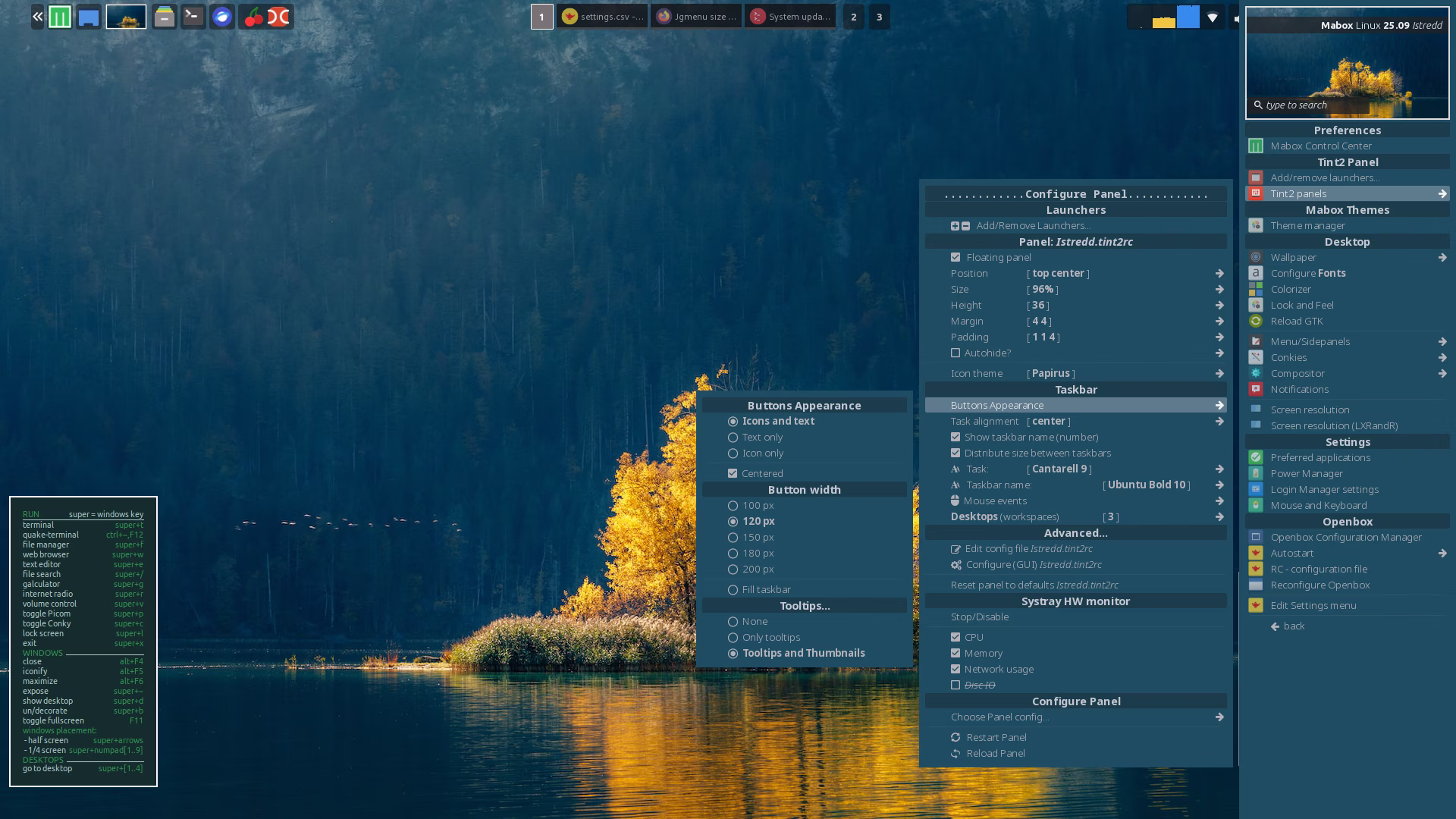 Jgmenu is working as intended, but the Panel configuration menu appears shrunken, as you can see in the image (from a phone