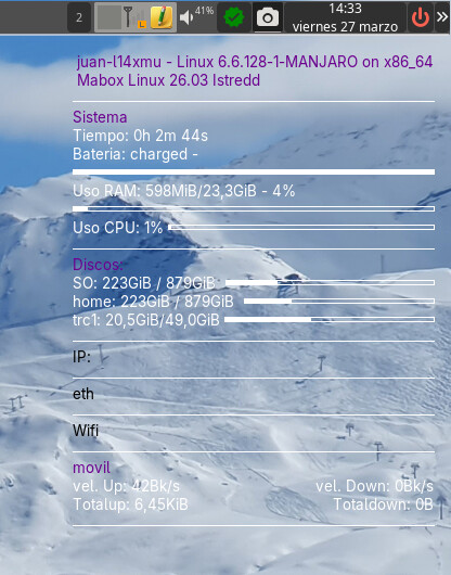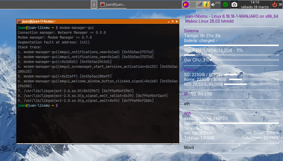 En el portatil tengo una sim para conectarme con banda ancha a la red. Con la anterior versión de Mabox que tenía instalada me funcionaba correctamente. Pero desde que he actualizado a la última versión 25.12 y ahora 26.03 ha dejado de funcionar.