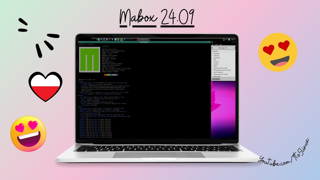 Hi, welcome to another video on this channel. In today's video I will talk about a very interesting Polish Linux distribution Box Linux. It is a rolling release distribution based on Manjaro, using not a graphical environment, but a very light and very configurable open Box window manager. There are very customisable panels, Timing, Manager, Conky, a lot of tools to help configure the whole system. There are a lot of themes, wallpapers, gradients, but of course you can also create your own.