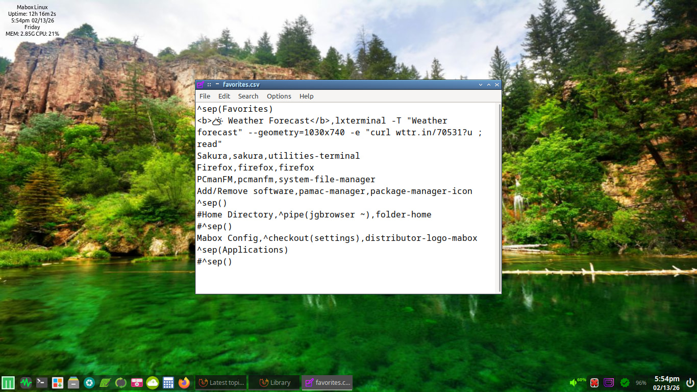 As you can see, the weather icon is set to the right a bit more than I would like, as I would want it to align with the other icons that appears below its entry. Here is the main menu config file I am using: