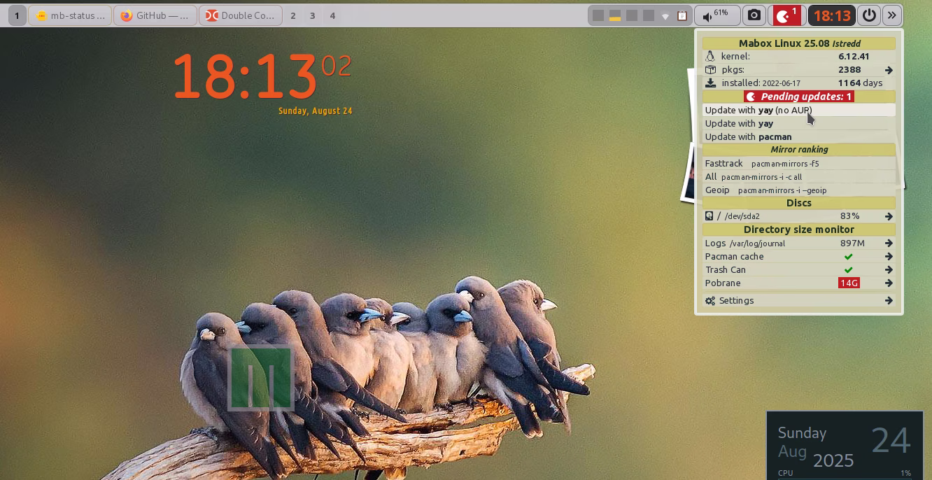 For now, I’ve disabled the DISK/USB section in mb-status to avoid accidentally hovering over the large disk and causing the system to hang.