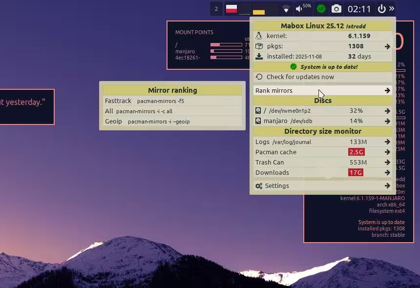 I was notified of an update to my browser on laptop #1. So apparently the package has hit the repository. I go to update my desktop without being notified and it reports ‘nothing to do.’