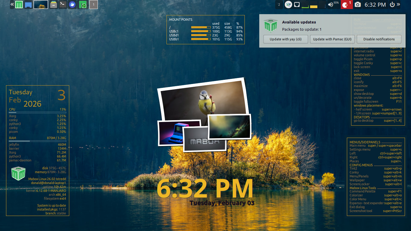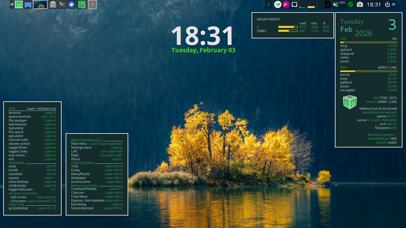 Iโve started another round of polishing and improving Mabox tools. So expect more frequent small updates to packages from our repo in the coming days/weeks ![]()