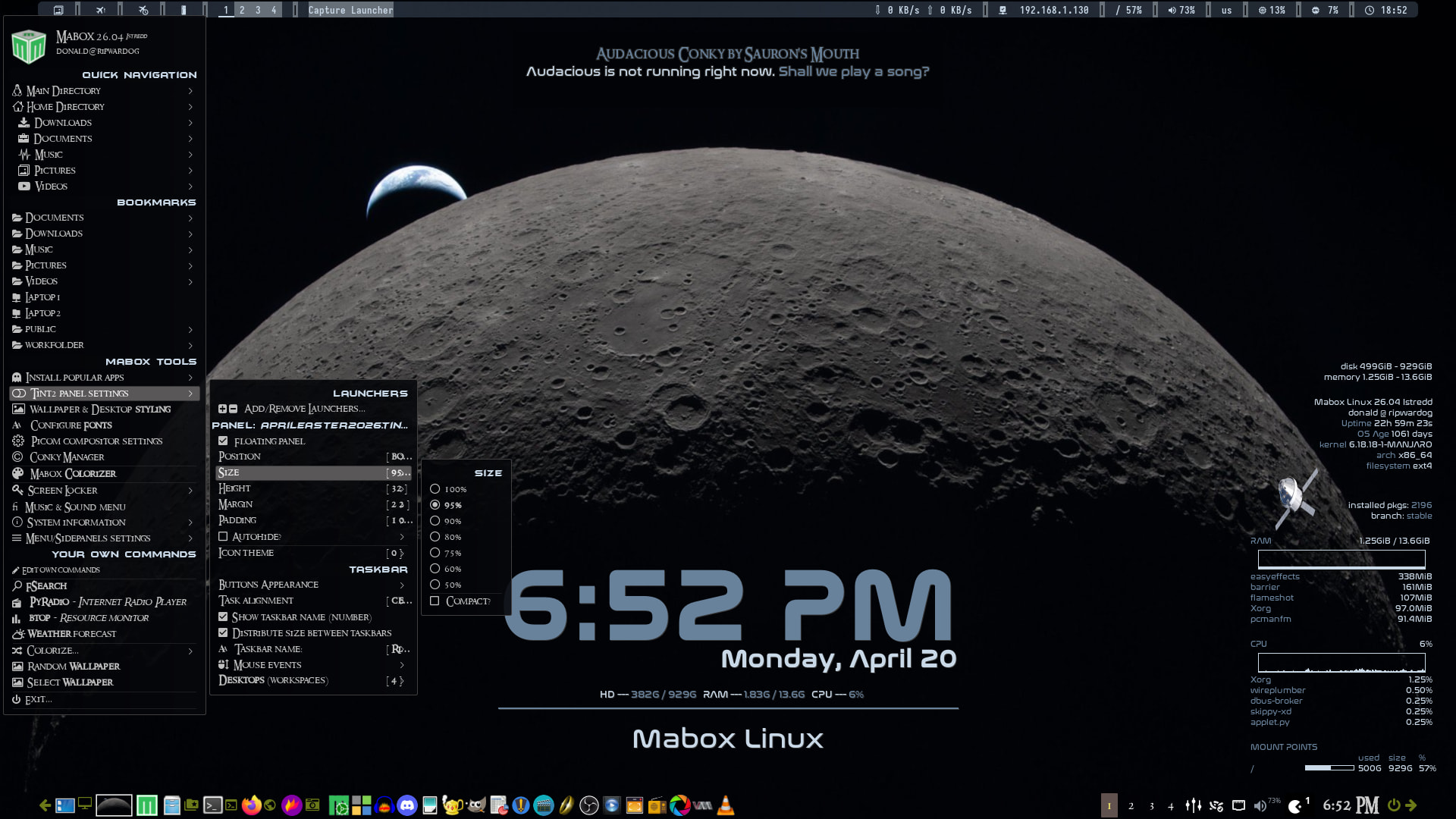 Opening the left hand menu then choosing tint2 panel settings sub menu and I noticed that there is no longer an option to ‘reload’ tint2. Is this normal? I seem to remember there being an option there to do just that before.