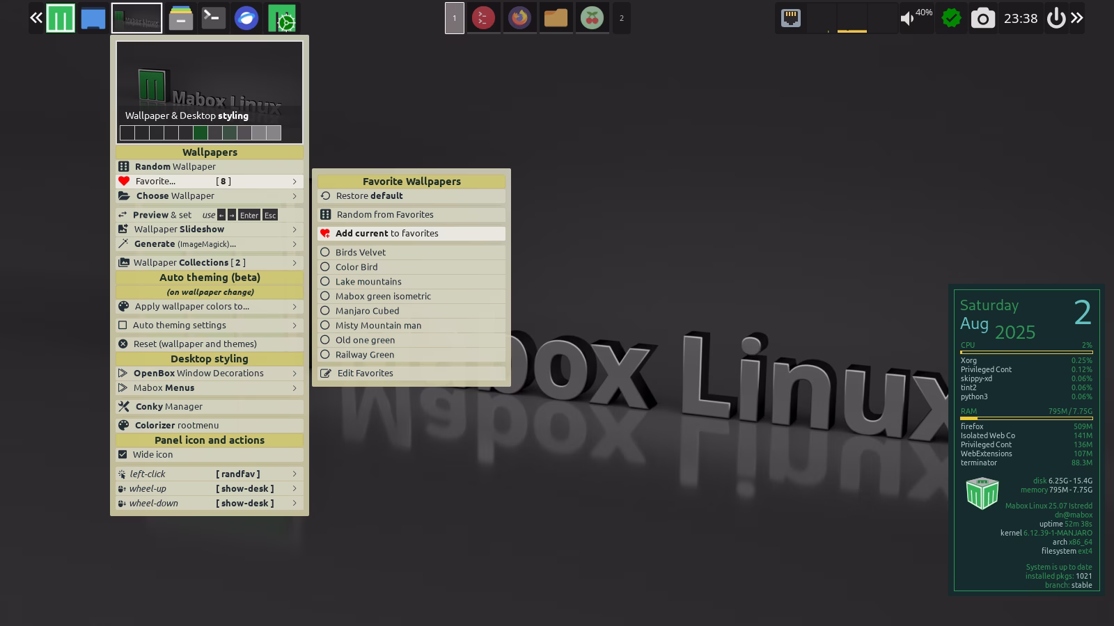 Wallpaper menu ( C-A-w or right-click on thumbnail in panel ) update.