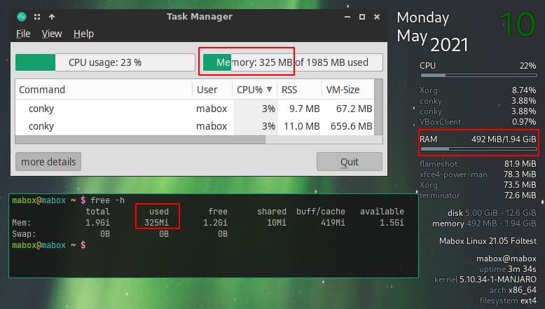 To jest nowy sposób liczenia i pokazywania pamięci przez Conky. Różne programy różnie to pokazują.